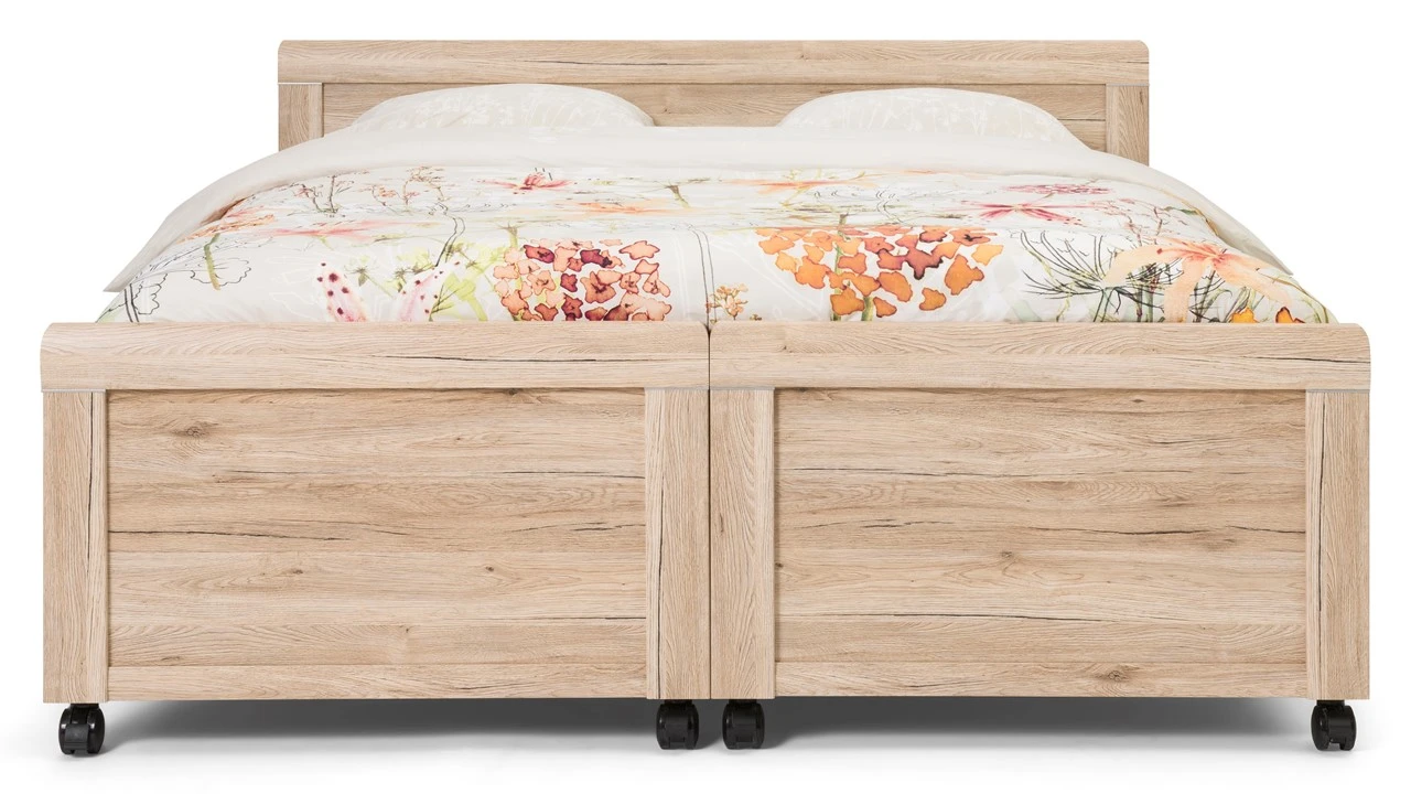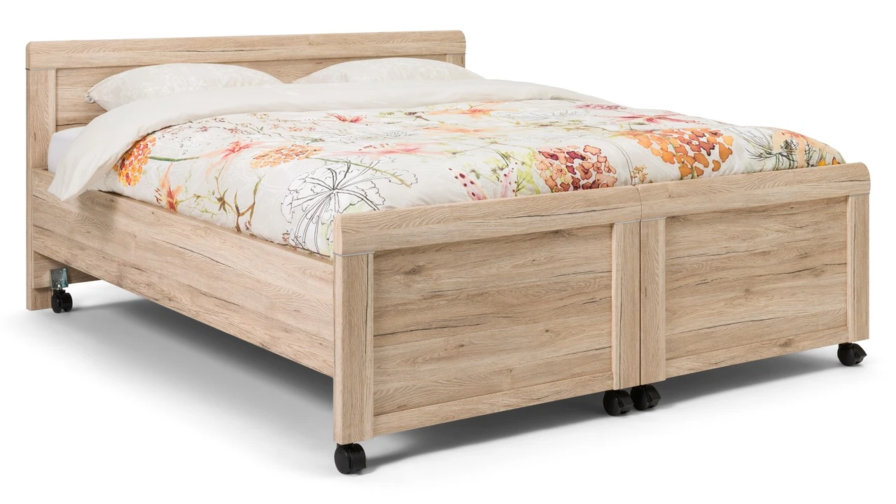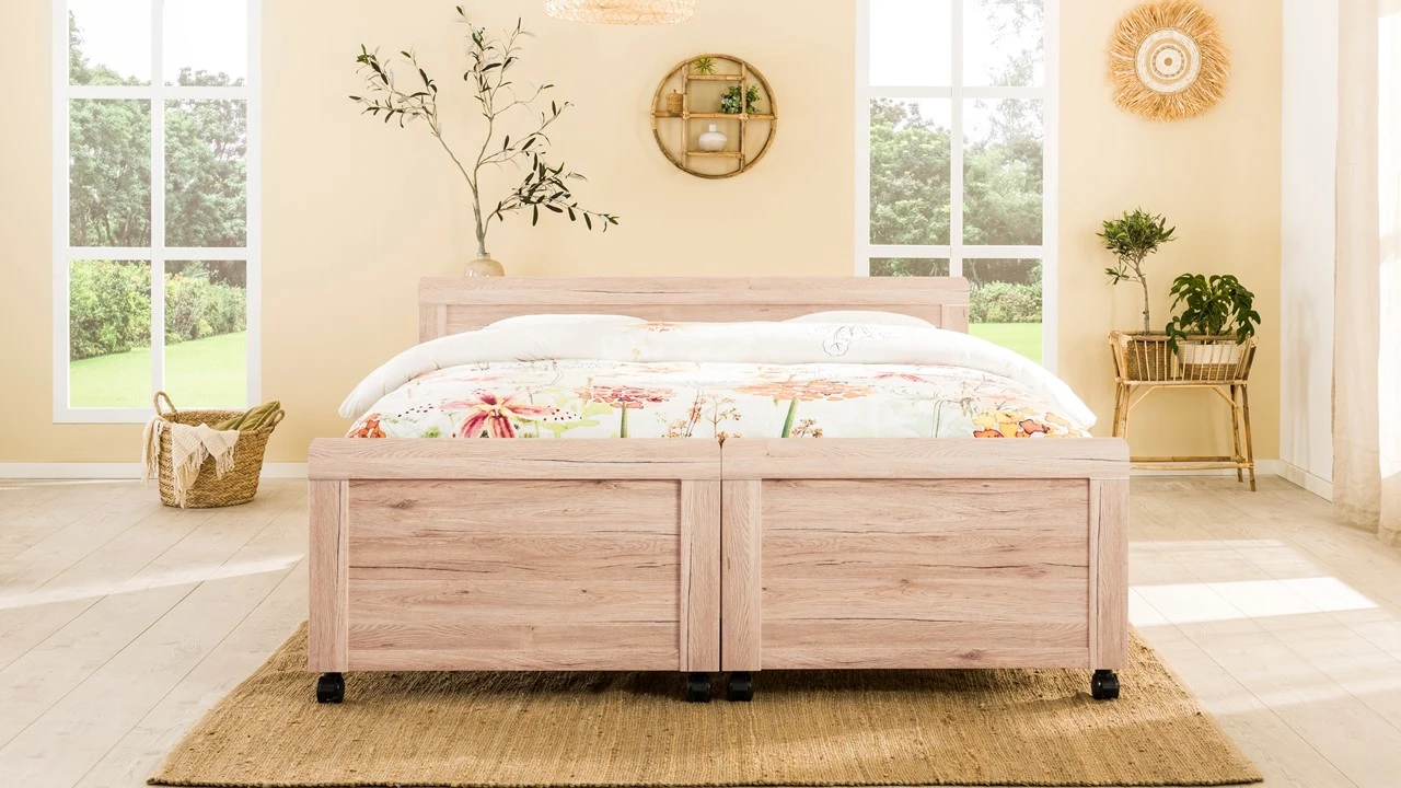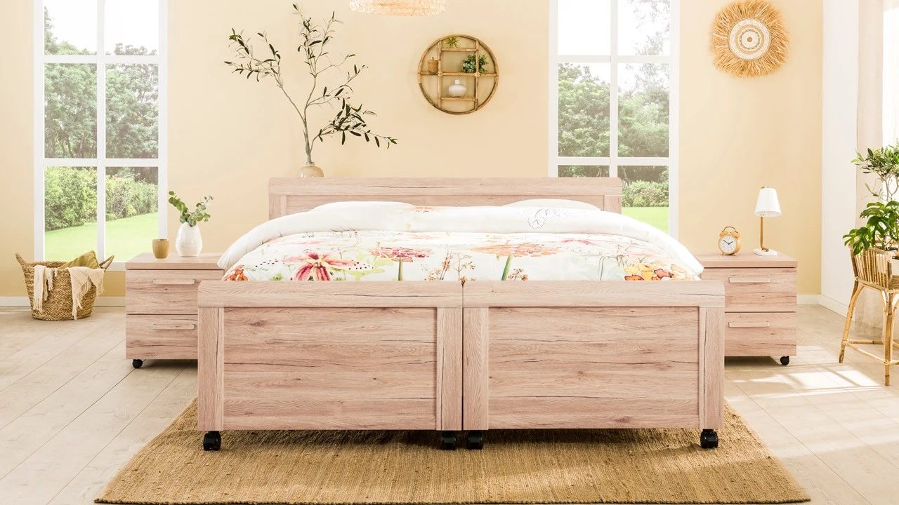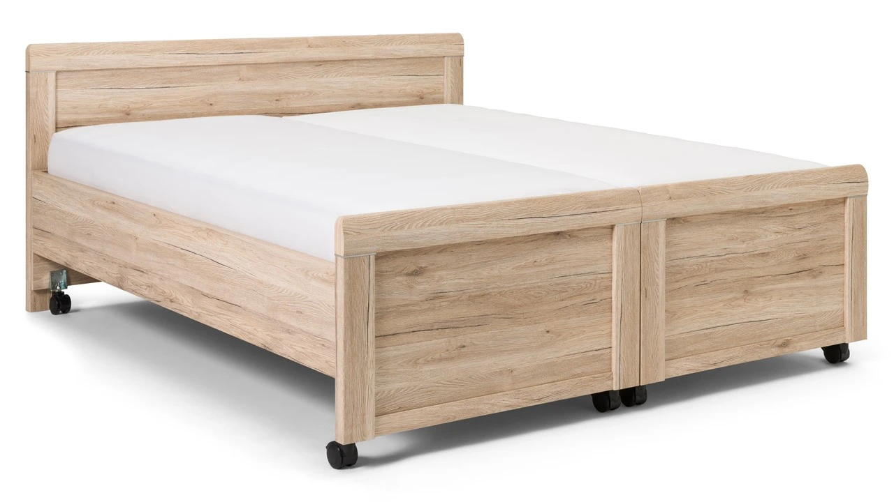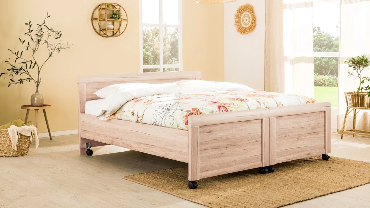 Breng maximaal comfort in je slaapkamer met dit charmante, uitrijdbare bed Elba. Een stevig comfortbed, waarmee je jaren vooruit kunt. Het tweepersoonsbed bed deel je eenvoudig in tweeën. Ideaal bij het schoonmaken of het verschonen en opmaken van je bed. Zo hoef je je lichaam niet langer meer extra te belasten en bespaar je je rug. Daarnaast stap je dankzij de prettige, hoge instap eenvoudig in en uit bed.