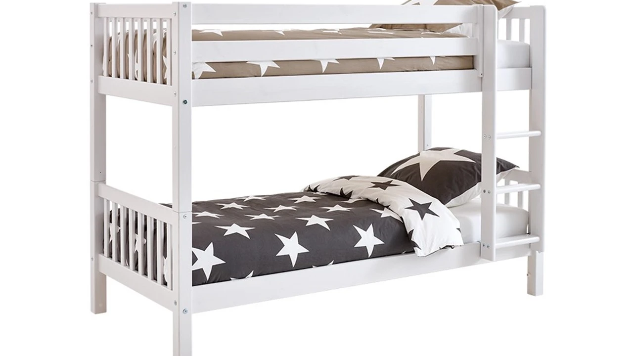 Het stapelbed wordt geleverd inclusief bedbodems en de stevige ladder en exclusief matras en andere accessoires.
